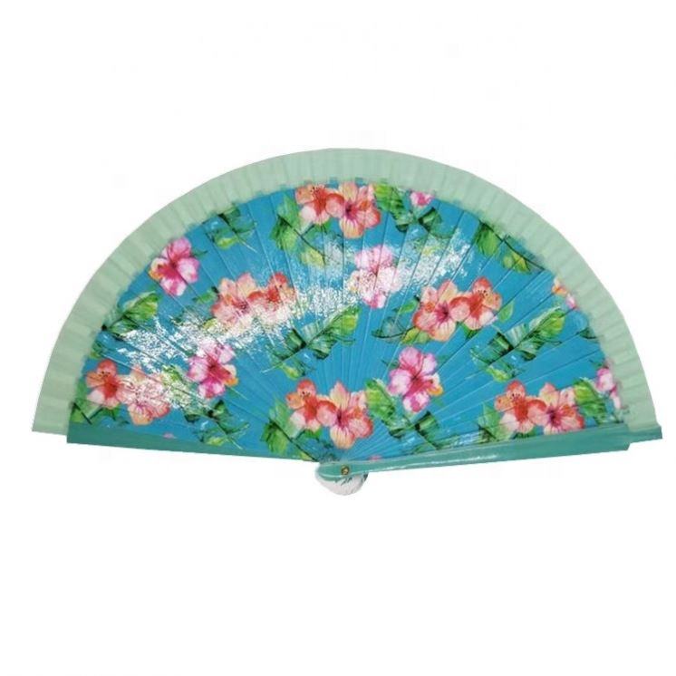 พัดลมไม้สเปนพิมพ์ลายดิจิทัลพับได้งานเต้นรำออกแบบได้ตามต้องการ