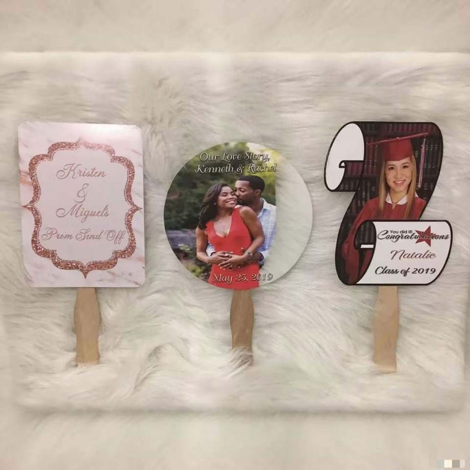 พัดลมพลาสติก PP คุณภาพดี แบบกำหนดเอง สำหรับงานแต่งงาน งานรับปริญญา และงานรำลึก ของที่ระลึก พัดลมมือถือทรงกลมแบบกำหนดเอง สำหรับงานวันเกิด