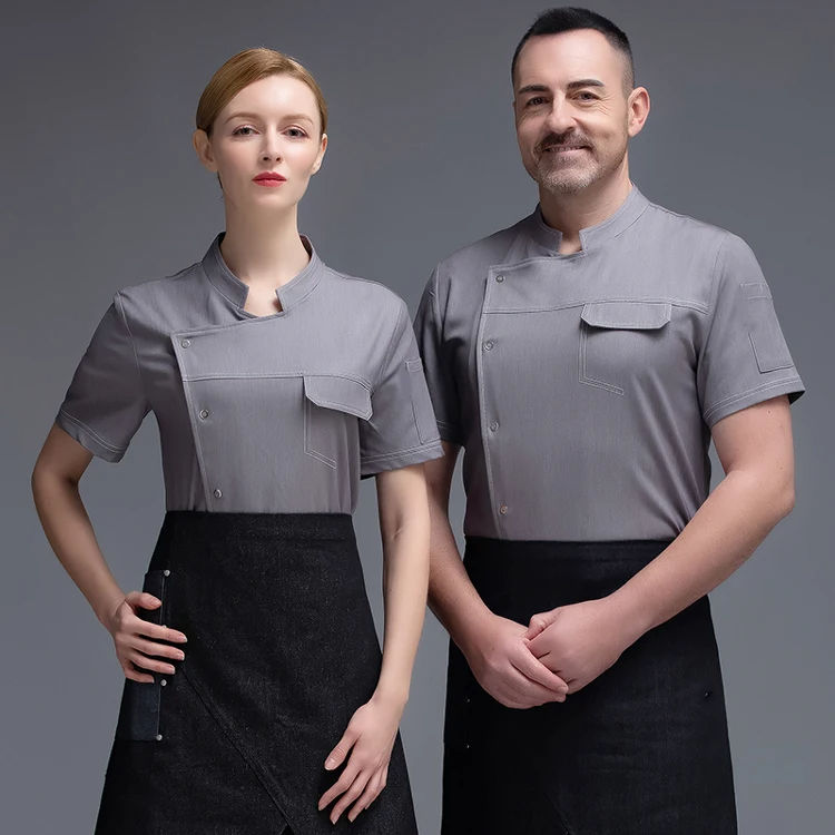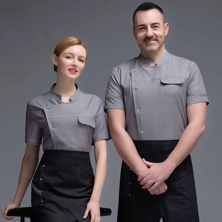 เครื่องแบบเชฟทำอาหารสำหรับร้านอาหารและโรงแรมชุดเครื่องแบบเชฟชายและหญิงสีขาวดำออกแบบได้ตามต้องการ