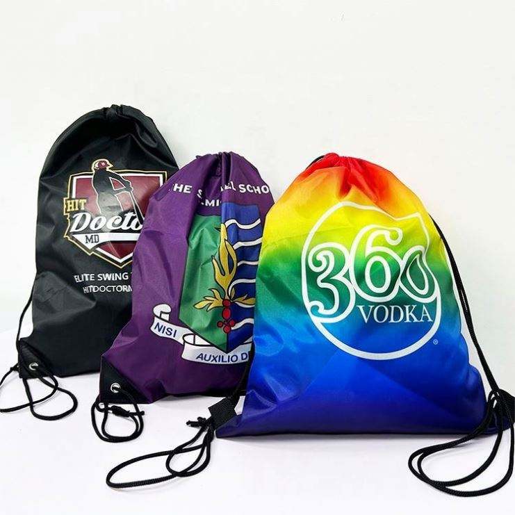 กระเป๋าเชือกผูกแบบกำหนดเอง กระเป๋าผ้าโพลีเอสเตอร์ 420D แบบกำหนดเอง กระเป๋าเชือกผูกพิมพ์ลาย