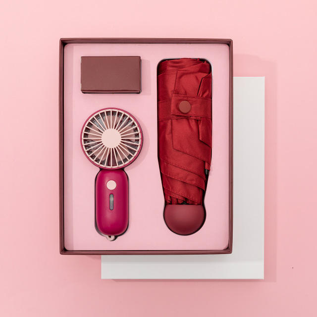 ชุดของขวัญส่งเสริมการขายแบบกำหนดเอง พัดลมขนาดเล็กและชุดของขวัญร่ม ชุดของขวัญสำหรับธุรกิจและองค์กร