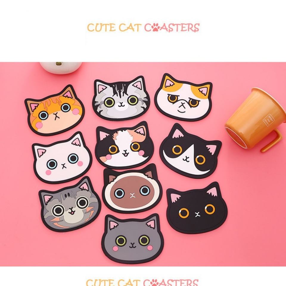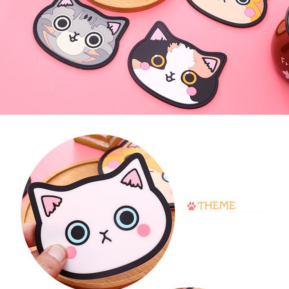 แผ่นรองแก้วกาแฟกันลื่น ทนความร้อน สำหรับโปรโมชั่น ของตกแต่งครัว ซิลิโคนรูปแมวน่ารัก