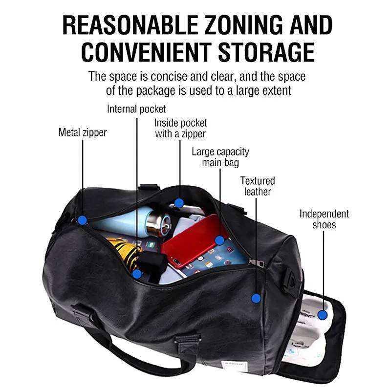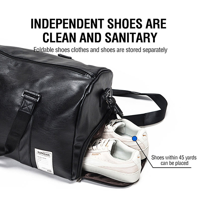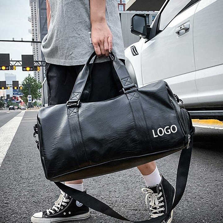 Custom Pu Leather Duffle Bag with logo Black Tote Weekender Overnight Carryon Hand Sports Sac De Gym Duffel Travel Bag for Men