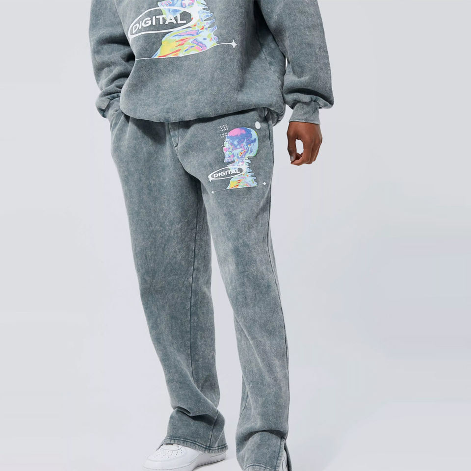 พัฟพิมพ์แบบกําหนดเองผ้าฝ้าย 100% วินเทจหนักน้ําหนักกรดล้างกางเกงเหงื่อในราคาโรงงานขายส่งที่ดีที่สุด
