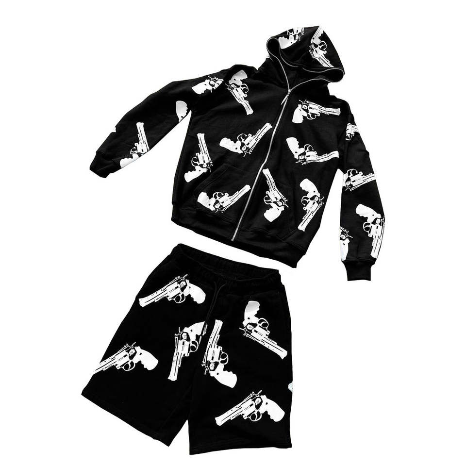 ชุดเสื้อฮู้ดแบบสวมหัวสำหรับผู้ชายชุดวิ่งออกกำลังกาย2ชิ้นเสื้อฮู้ดกันหนาวพร้อมกางเกงขาสั้นทรงหลวมพิมพ์ลายพัฟตามสั่ง