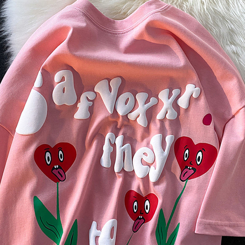 เสื้อยืดผ้าฝ้าย100% โฟมพิมพ์ลายกราฟิกโอเวอร์ไซส์ทรงหลวมพอดีสำหรับผู้ชายพิมพ์ลายกราฟิคสำหรับ3D