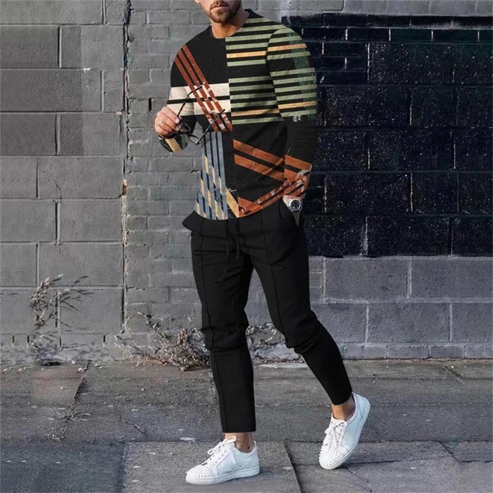 ชุดวอร์มมีฮู้ดและกางเกงวอร์มพิมพ์ลายพัฟสำหรับผู้ชายชุดเสื้อฮู้ดและกางเกงจ๊อกกิ้งสำหรับทุกเพศ