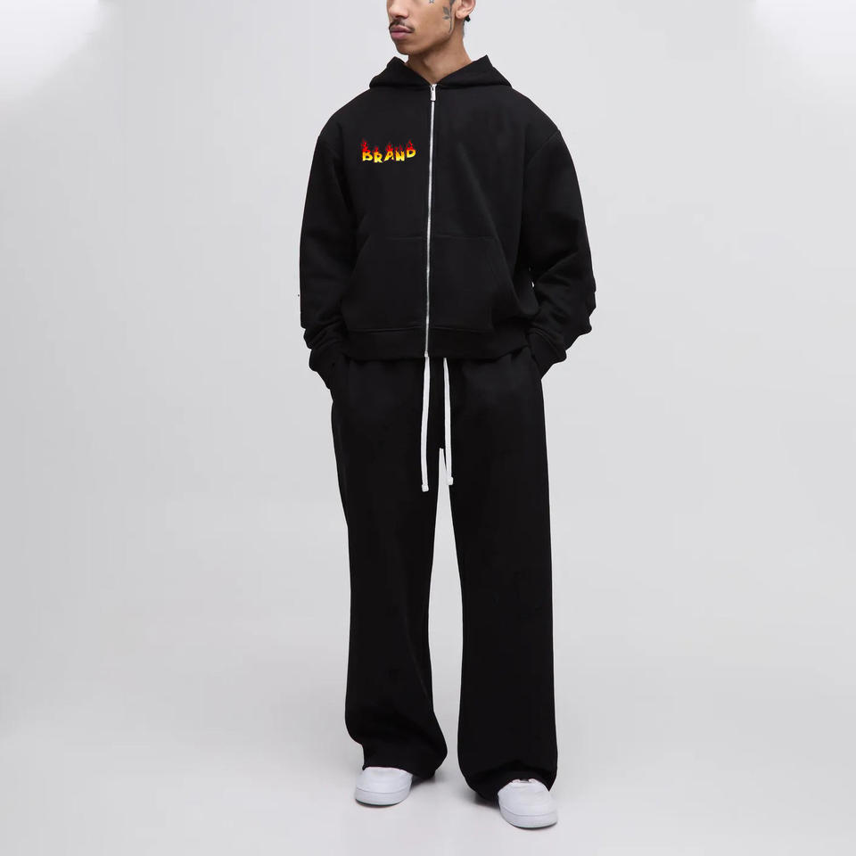 ชุดกางเกงขายาวมีฮู้ดสำหรับผู้ชายชุดเสื้อผ้า2ชิ้นผ้าคอตตอนพิมพ์โลโก้พัฟตามสั่ง