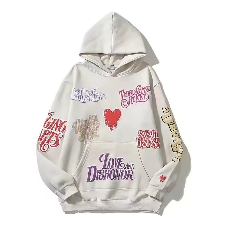 เสื้อฮู้ดพิมพ์ลายหัวใจแบบพัฟ สไตล์ฮิปฮอป ผ้าฟลีซหนานุ่ม ไซส์ใหญ่ ผ้าฝ้าย 100% สำหรับผู้ชาย