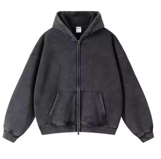 เสื้อฮู้ดดี้ผ้าเจอร์ซีย์บุซับในกันลม ทรงปกติ สำหรับผู้ชายและผู้หญิง ลวดลายพิมพ์แบบพัฟ โลโก้สั่งทำพิเศษ ล้างสีแบบ Acid Wash ซิปหน้า ผ้าเฟรนช์เทอร์รี่ 100% สำหรับฤดูหนาว