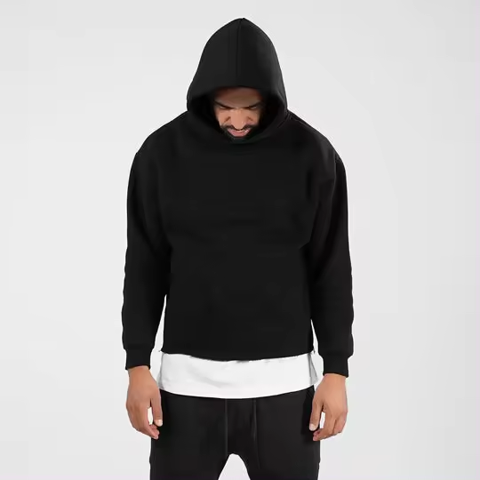 เสื้อมีฮู้ดผ้าฝ้ายโอเวอร์ไซส์ผ้า100% มีฮู้ดผ้าคอตตอนโอเวอร์ไซส์สำหรับงานปักขอบสีดำ