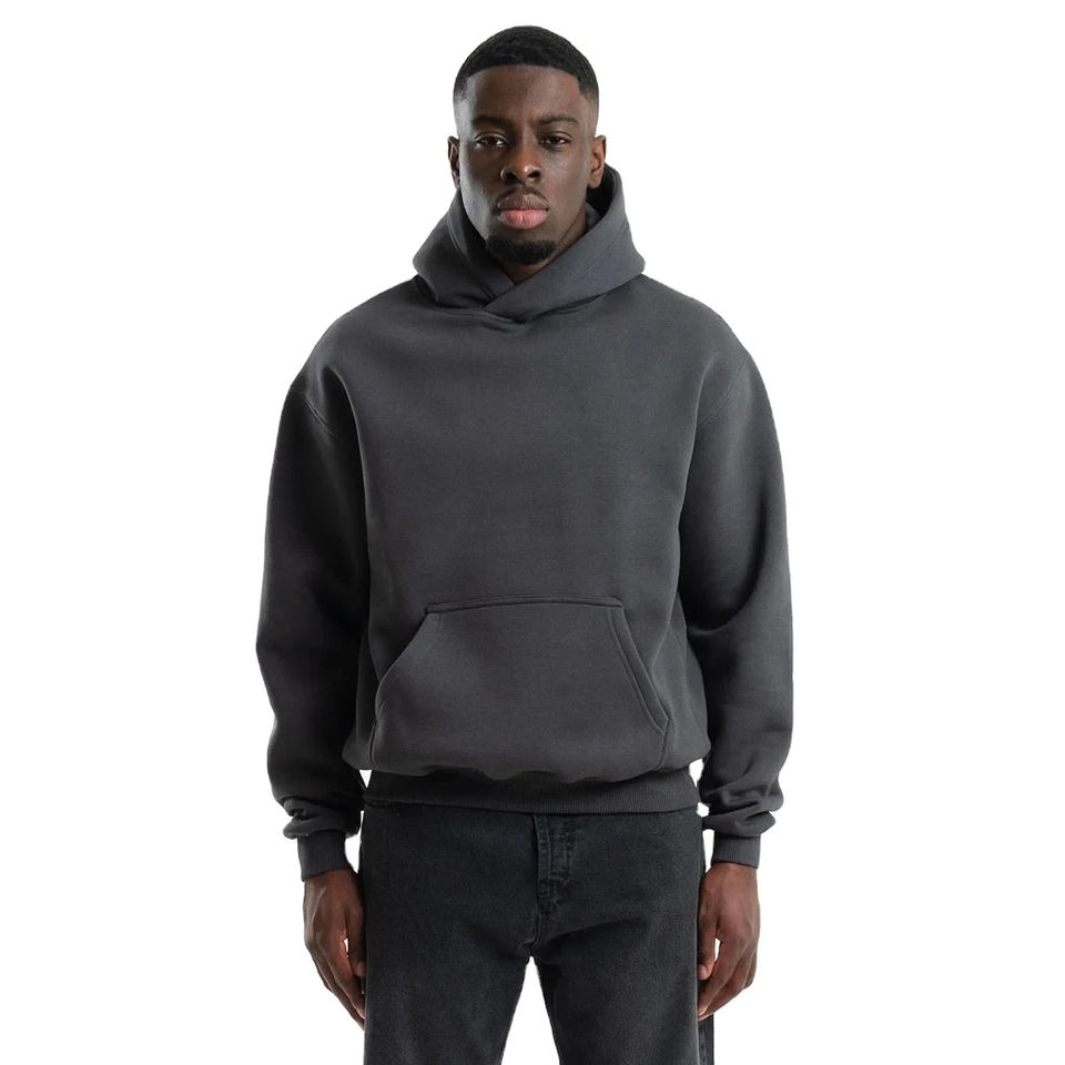 เสื้อฮู้ดดี้โอเวอร์ไซส์สีพื้นพิมพ์ลายพัฟฟ์ตามสั่ง ออกแบบโลโก้ของคุณเอง พิมพ์ลาย 3 มิติ ผ้าฝ้าย 100% สำหรับผู้ชาย