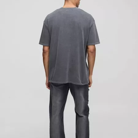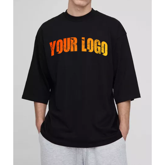 เสื้อยืดสตรีทแวร์พิมพ์ลายโลโก้แบบพัฟสกรีนทรงโอเวอร์ไซส์ ไหล่ตก ทรงบ็อกซี่ ผ้าหนา สำหรับผู้ชาย