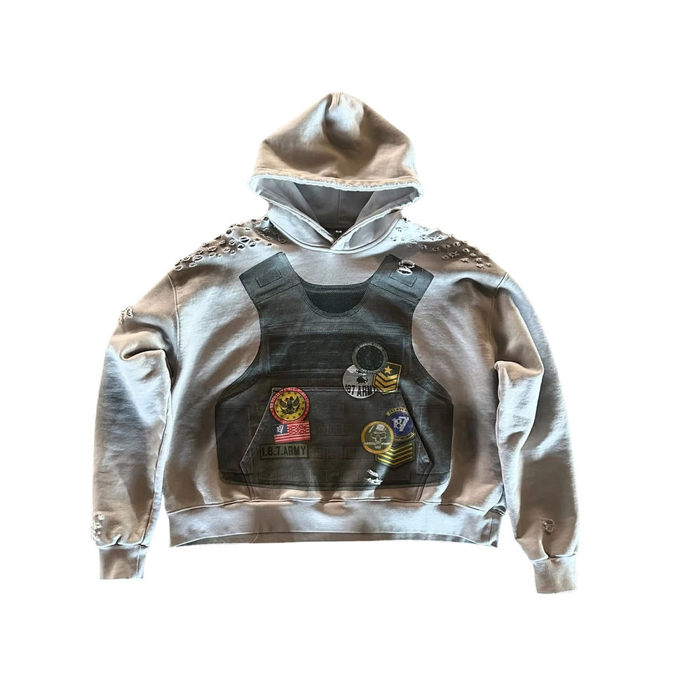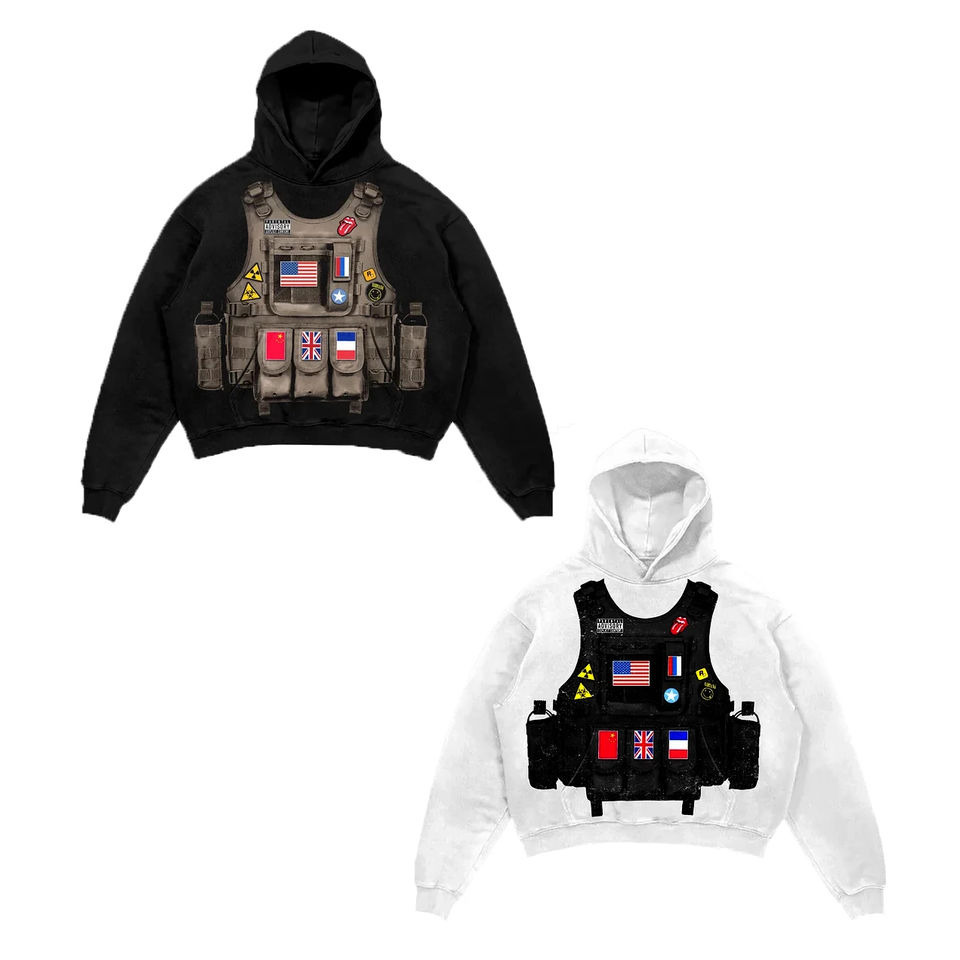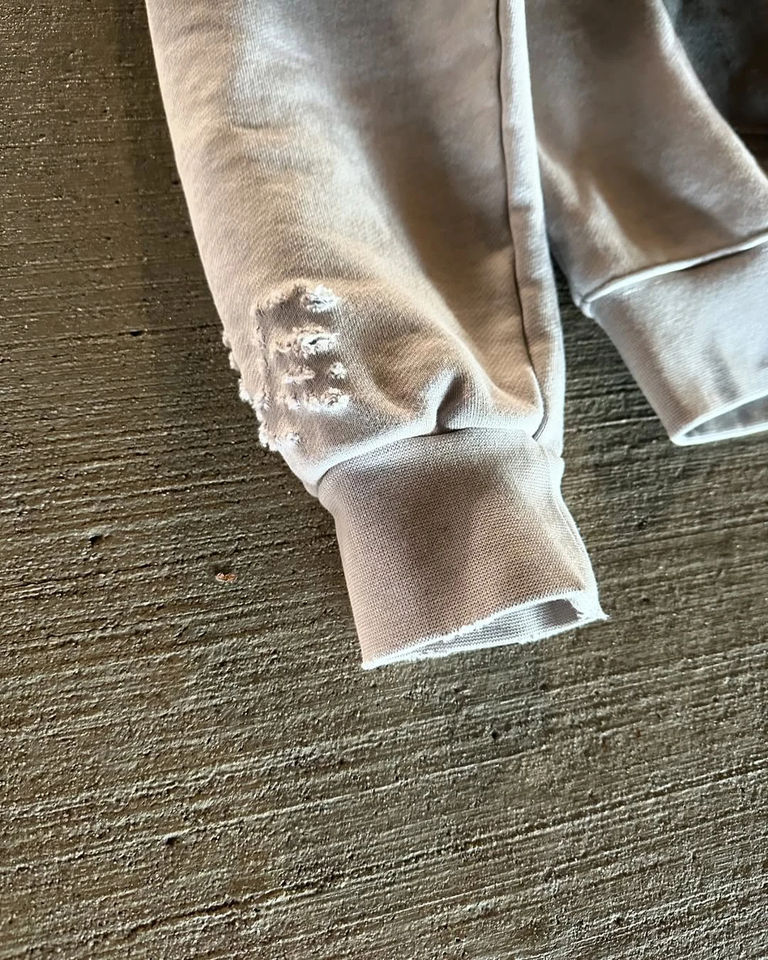 เสื้อฮู้ดดี้ทรงบ็อกซี่แบบครอป ผ้าเฟรนช์เทอร์รี่ 420 แกรม พิมพ์ลายกราฟิก ล้างสีแบบแอซิดวอช ทรงโอเวอร์ไซส์ สไตล์ดิสเทรส