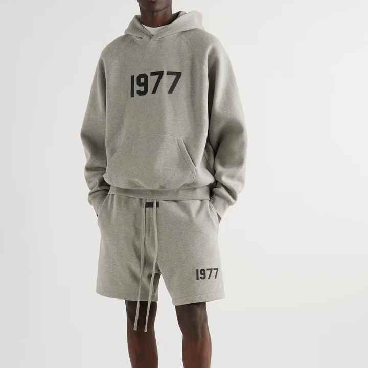 เสื้อมีฮู้ดแบบสวมหัวสำหรับผู้ชายชุดวอร์มกางเกงขาสั้นทรงโอเวอร์ไซส์