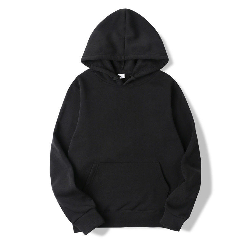 เสื้อฮู้ดแบบสวมหัวของผู้ชายผ้าคอตตอนสีดำ100% ขนาดใหญ่สำหรับฤดูหนาว