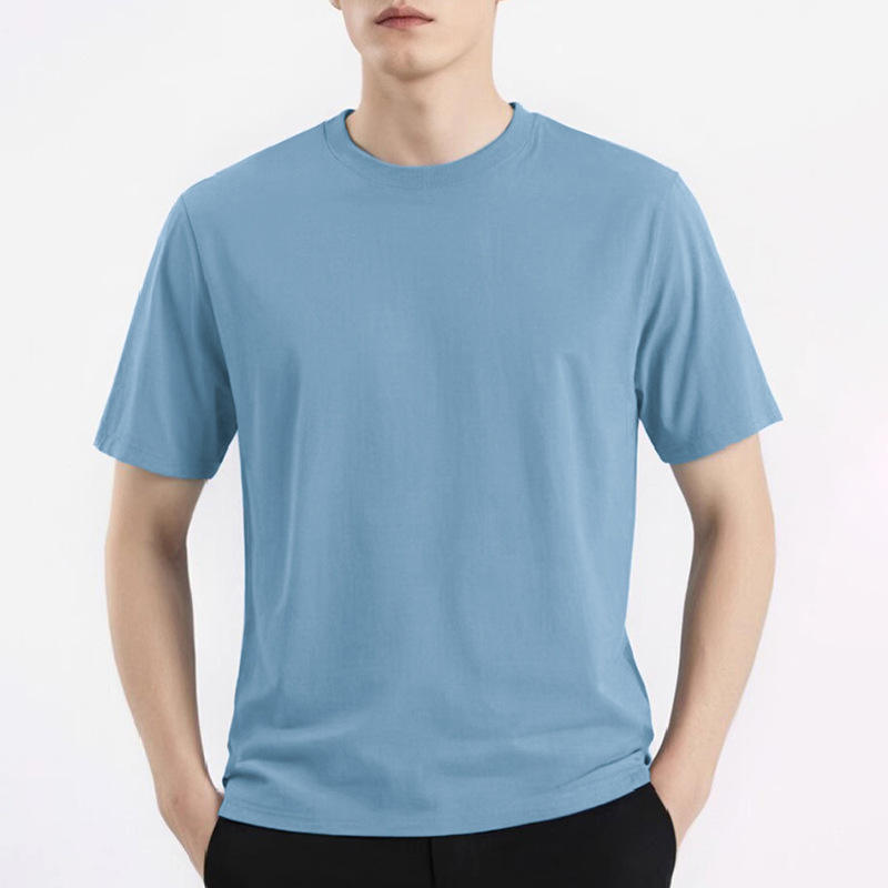 เสื้อยืดคอกลมแขนสั้นผ้าฝ้ายล้วนสำหรับผู้ชายเสื้อยืดทรงหลวมทันสมัยครึ่งแขนทำจากผ้าฝ้ายแท้ออกแบบได้ตามต้องการ