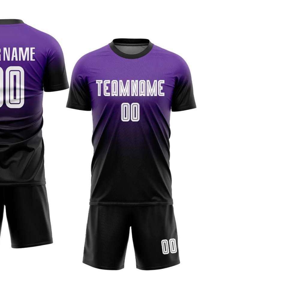 ชุดฟุตบอลสีม่วงดำแบบกำหนดเอง เสื้อและกางเกงขาสั้น ชุดฟุตบอลสำหรับฝึกซ้อมสโมสร แข่งขันลีก และกีฬา