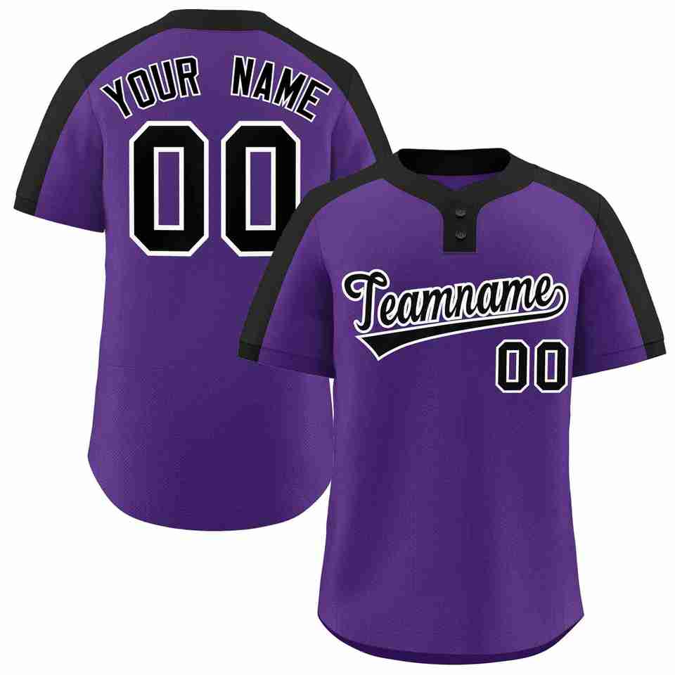 เสื้อซอฟต์บอลแบบคลาสสิกสีม่วงดำ-ขาวแบบสั่งทำพิเศษพร้อมกระดุมสองเม็ด