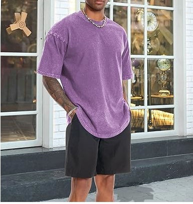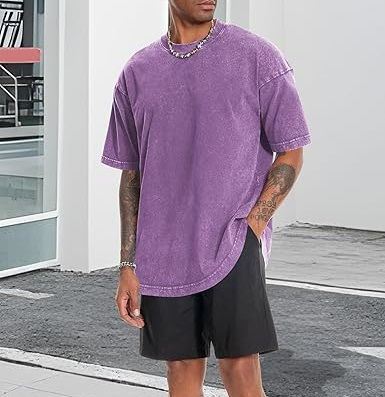 เสื้อยืดคอกลมสีม่วงแบบสั่งทำพิเศษ คุณภาพสูง สไตล์สตรีทแวร์สำหรับฤดูร้อน ระบายอากาศได้ดี ทรงโอเวอร์ไซส์ เสื้อยืดทรงหลวม คอกลม