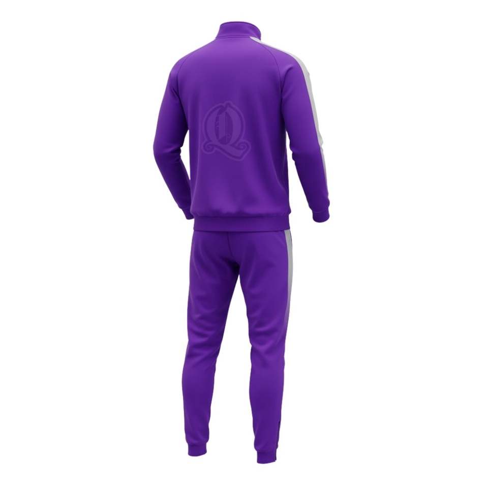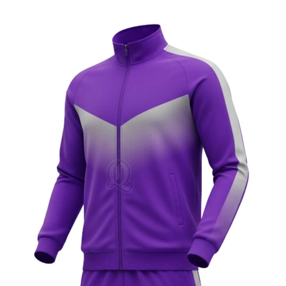 แจ็กเก็ตและกางเกงโพลีเอสเตอร์สำหรับผู้ชายชุดฝึกฟุตบอลชุดวอร์มสำหรับการฝึกซ้อมฟุตบอลทีมสีเทาสีม่วงแบบกำหนดเอง