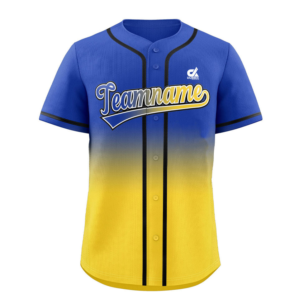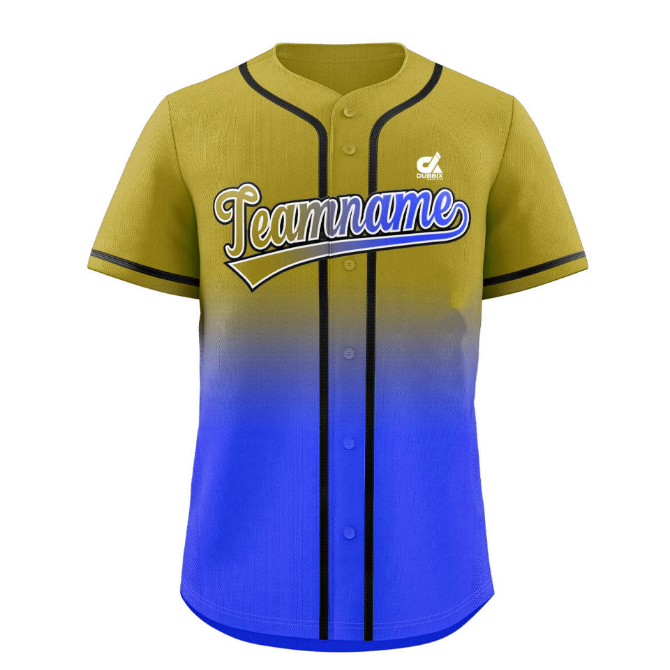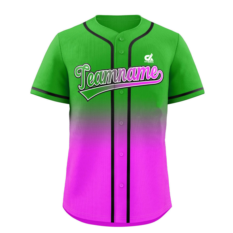 เสื้อเบสบอลไล่เฉดสีม่วงเขียวแบบกำหนดเองสำหรับผู้ชาย เสื้อทีมแบบติดกระดุม ระบายอากาศได้ดี ผลิตจากโพลีเอสเตอร์ พร้อมปักชื่อส่วนตัว