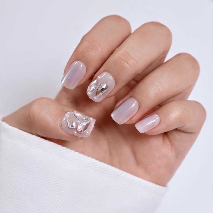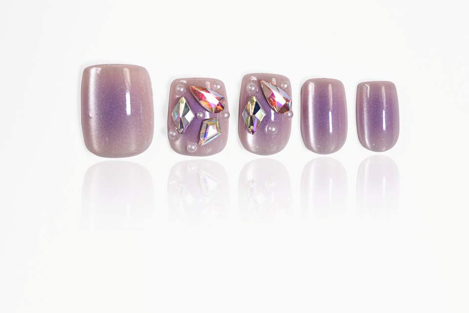 เล็บปลอมสีม่วงแบบสั่งทำพิเศษ ABS กดติดเล็บปลอม ขายส่ง ดีไซน์เล็บปลอม ความยาวปานกลาง รูปทรงอัลมอนด์ ปั๊มลายทอง โรงงานรับผลิตแบบ OEM ODM Helios 24