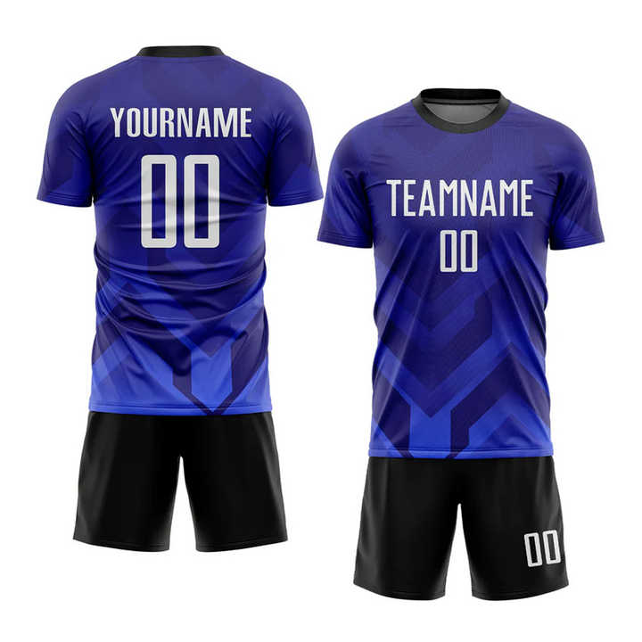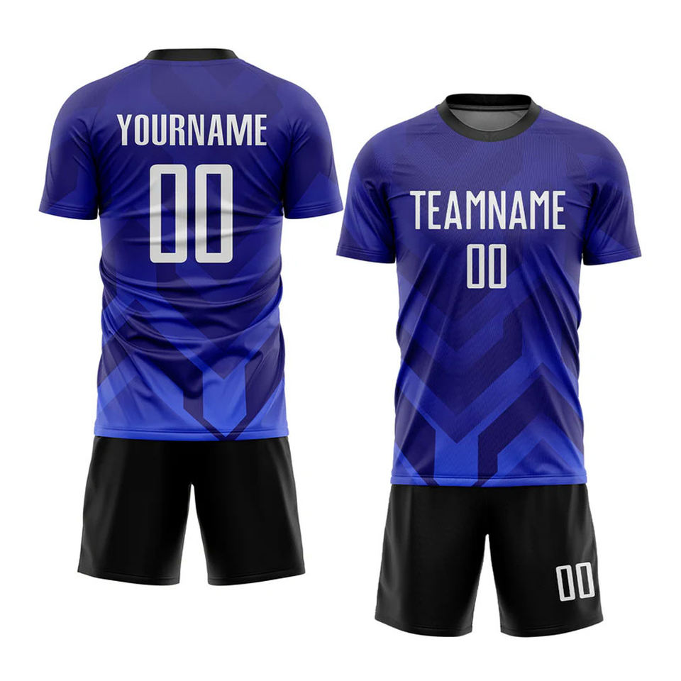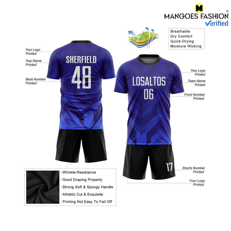 ชุดกีฬาแบบระเหิดสีกรมท่าสีขาวม่วงชุดเล่นฟุตบอลส่วนตัวชุดกีฬาระบายอากาศได้ดี