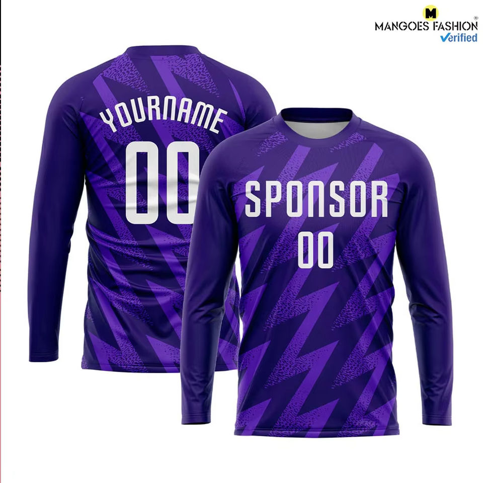 เสื้อเจอร์ซีย์ฟุตบอลอเมริกันพิมพ์ลายซับลิเมชันสีม่วงสีขาวสำหรับผู้ชายเสื้อตาข่ายเปล่าออกแบบโลโก้ได้ตามต้องการ