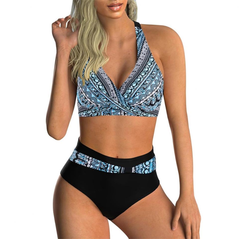 ชุดบิกินี่ผู้หญิงแบบ 2 ชิ้น ลายพิมพ์ Paisley คอวี ขาสูง แห้งเร็วและเป็นมิตรกับสิ่งแวดล้อม