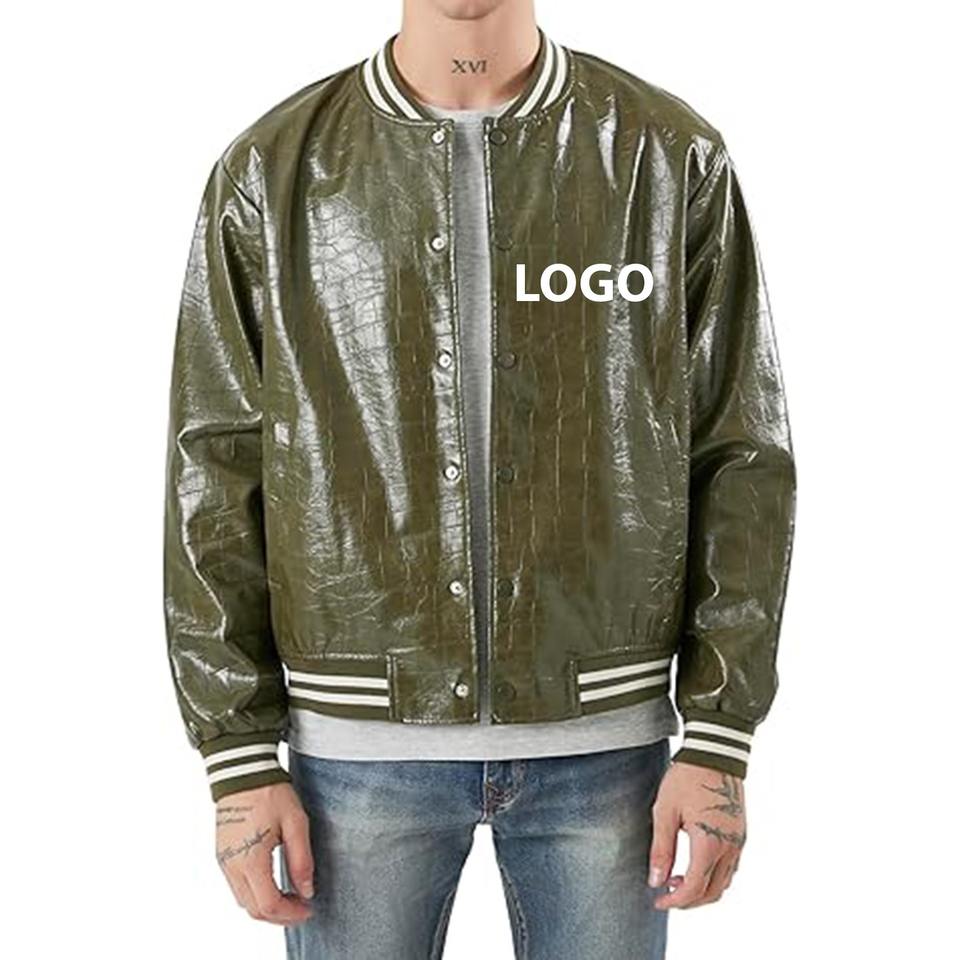 แจ็กเก็ตหนัง100% สำหรับผู้ชาย, แจ็กเก็ตหนังเนื้อจระเข้สำหรับใส่ในฤดูหนาวสไตล์นักศึกษาคลาสสิก