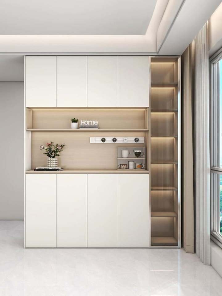 ตู้เก็บของทรงสูงสไตล์โมเดิร์นสีครีม คุณภาพดี ใช้งานได้จริง เหมาะสำหรับห้องนั่งเล่น