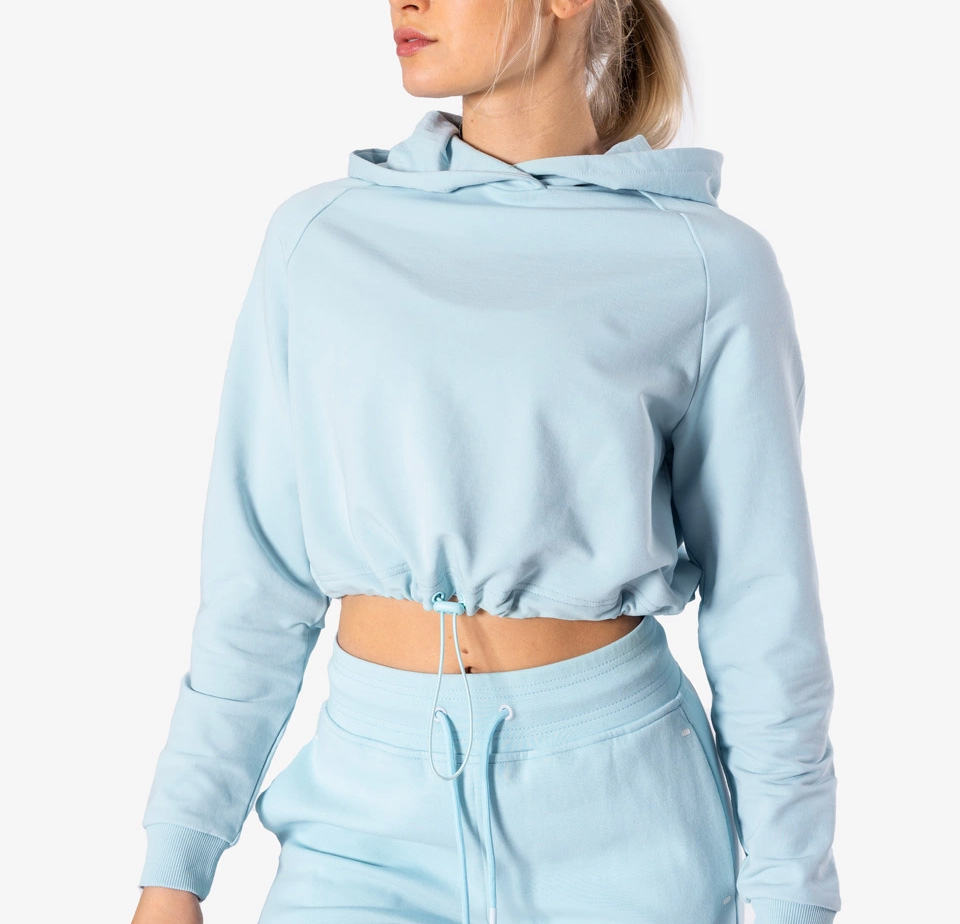 เสื้อกันหนาวมีฮู้ดสำหรับผู้หญิงเสื้อครอปสำหรับออกกำลังกายผ้าฟลีซเนื้อนุ่มขนาดใหญ่ออกแบบได้ตามต้องการ