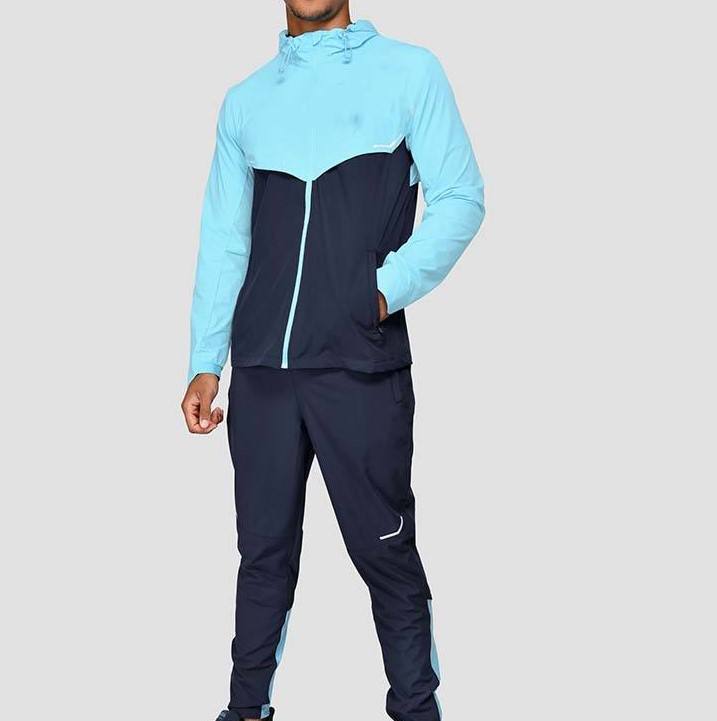 ชุดเซ็ตวอร์มกีฬาผู้ชาย 2 ชิ้น ผ้าโพลีเอสเตอร์แห้งเร็วแบบกำหนดเอง ผสมไนลอนสีตัดต่อ สำหรับออกกำลังกายกลางแจ้งและฝึกซ้อม