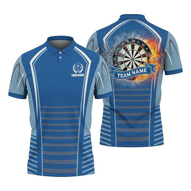 เสื้อโปโลทีมดาร์ทชายแบบแห้งเร็ว พิมพ์ลายแบบซับลิเมชั่นตามสั่ง สำหรับการแข่งขัน พร้อมกระเป๋า