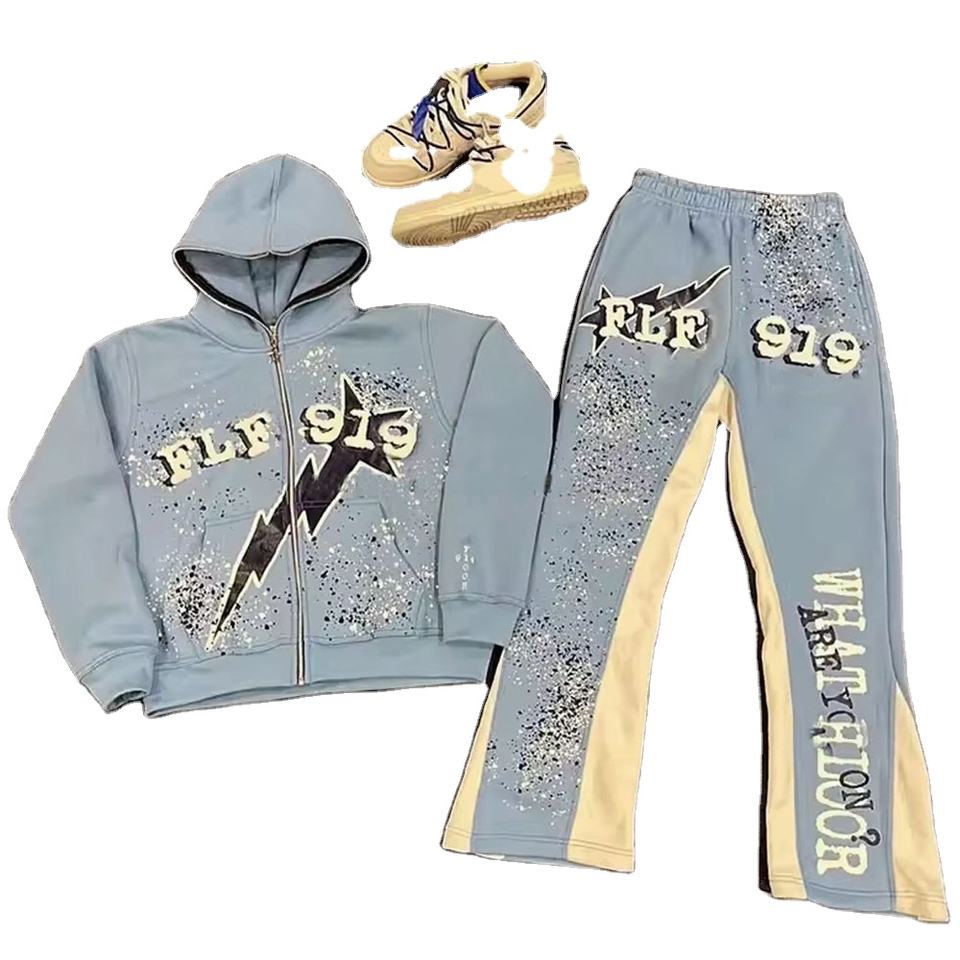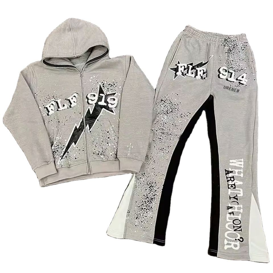ชุดวอร์มสองชิ้นแบบกำหนดเองได้ชุดวอร์มกางเกงมีฮู้ดแบบแห้งเร็วชุดวิ่งแบบสองชิ้นลายพระอาทิตย์ซีดจาง