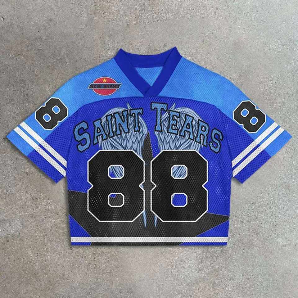 Custom Quick-drying V-neck Printed Retro Sports Shirt Oversized square T-shirt Men Football Crop Mesh Soccer Short Sleeve
