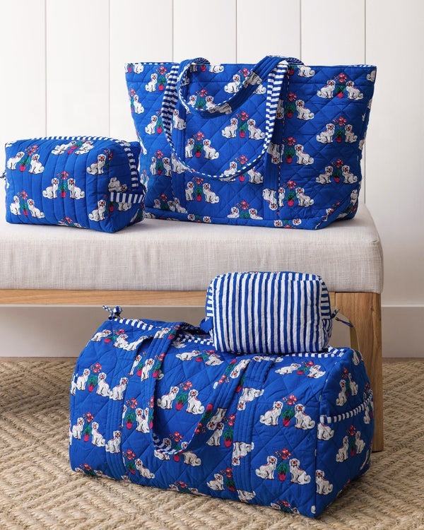 กระเป๋าทรงดัฟเฟิลสำหรับผู้หญิงสไตล์โบโฮพิมพ์ลายด้วยมือวัสดุผ้าใบลายสแปนเนียลส์สำหรับการเดินทาง