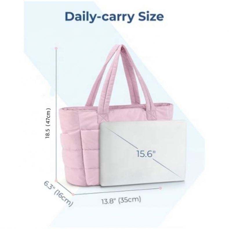 กระเป๋าโท้ทผ้านวมแบบกำหนดเองสำหรับผู้หญิง-กระเป๋าใส่ของสำหรับใส่ทำงานมีช่องกระเป๋าสะพายไหล่สำหรับเดินทางและสำนักงาน