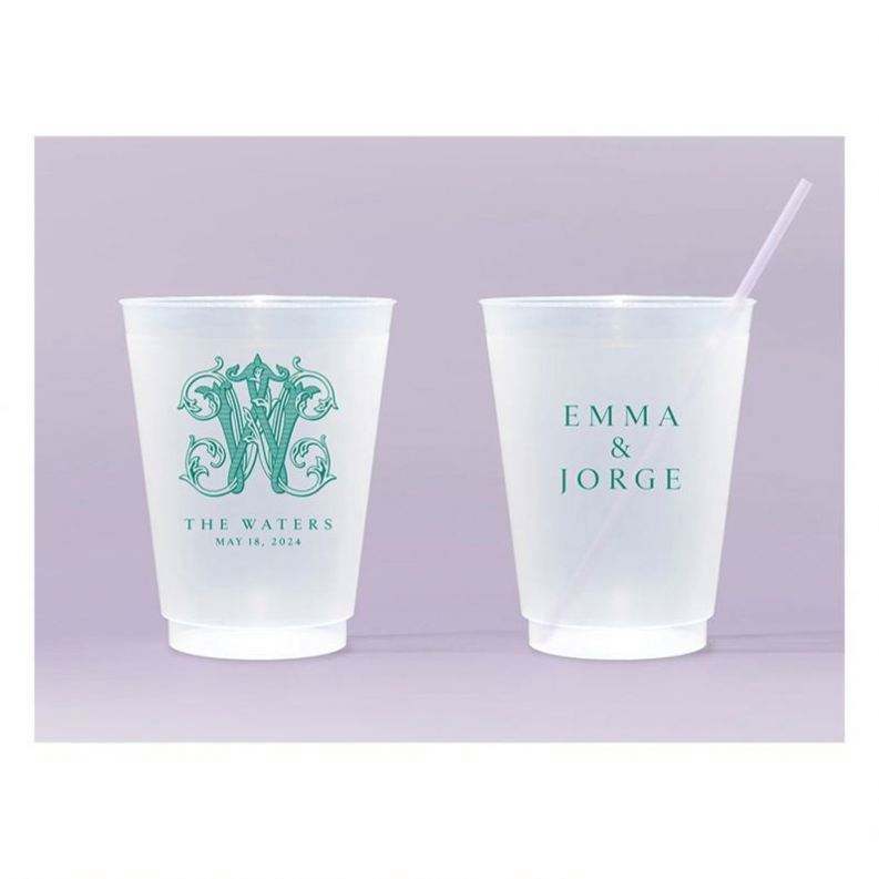 แก้วพลาสติกแบบกันน้ำสำหรับงานแต่งงาน งานเลี้ยงฉลอง งานขึ้นบ้านใหม่ แบบกำหนดเองได้ ลายโรแมนติก ฝ้า นำกลับมาใช้ใหม่ได้ ไม่แตกง่าย