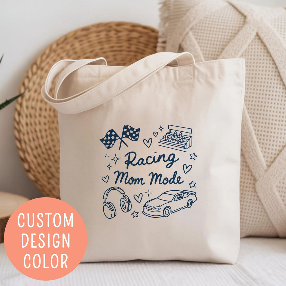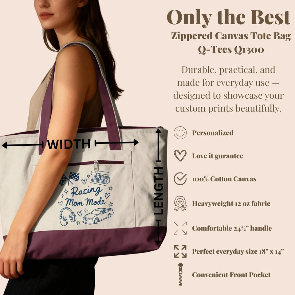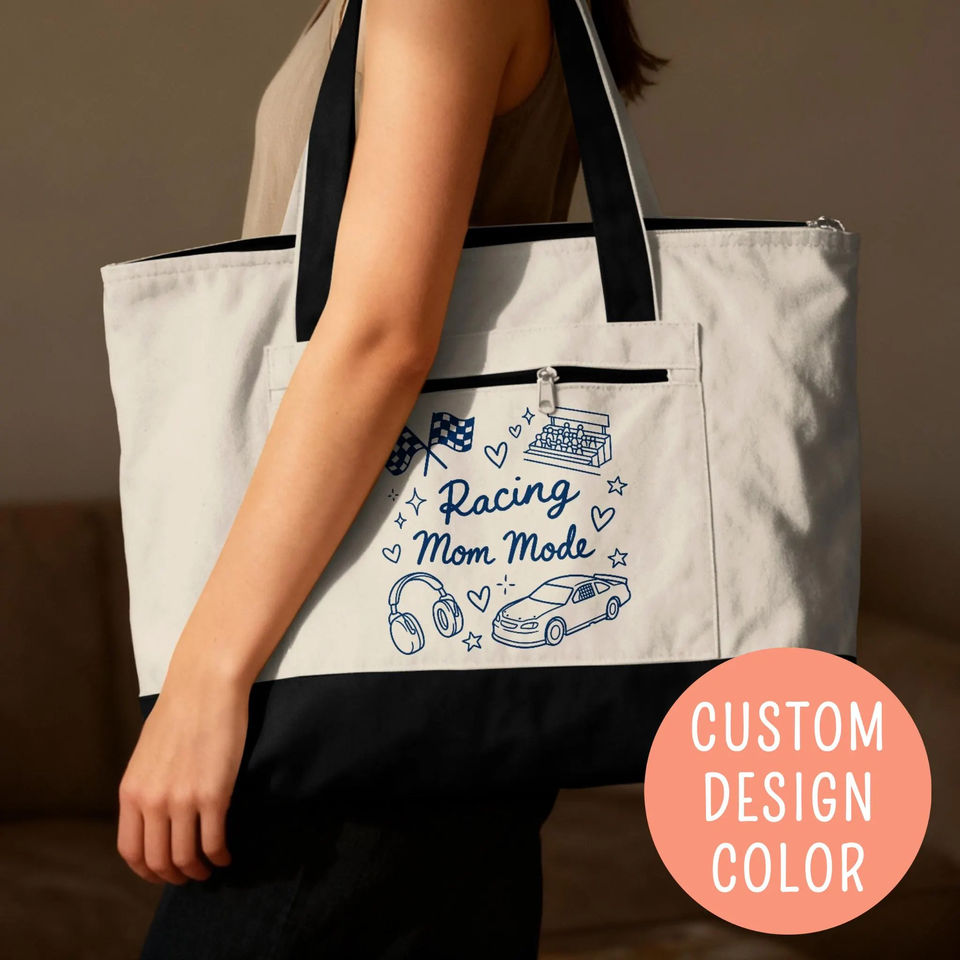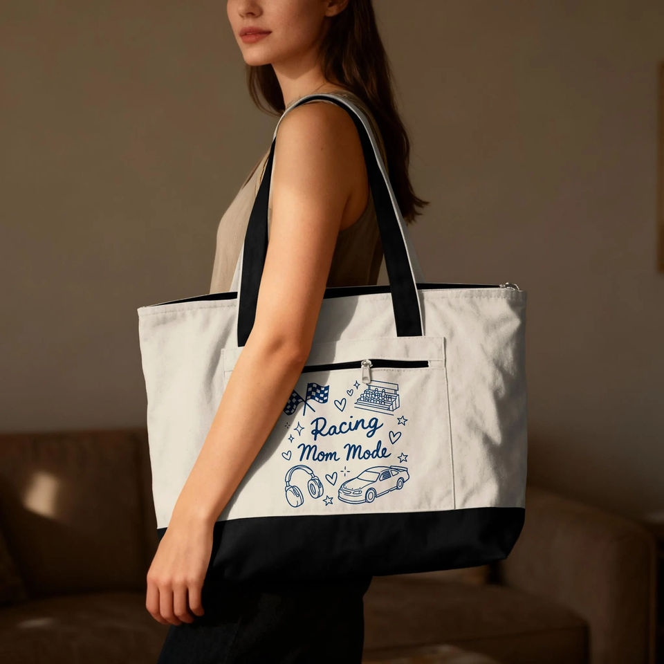 กระเป๋าซิปแบบมีหูหิ้วสำหรับคุณแม่สายแข่งรถ ลายธงชาติ ของขวัญสำหรับแฟนมอเตอร์สปอร์ต ผู้รักความเร็ว ราชินีสนามแข่งรถ