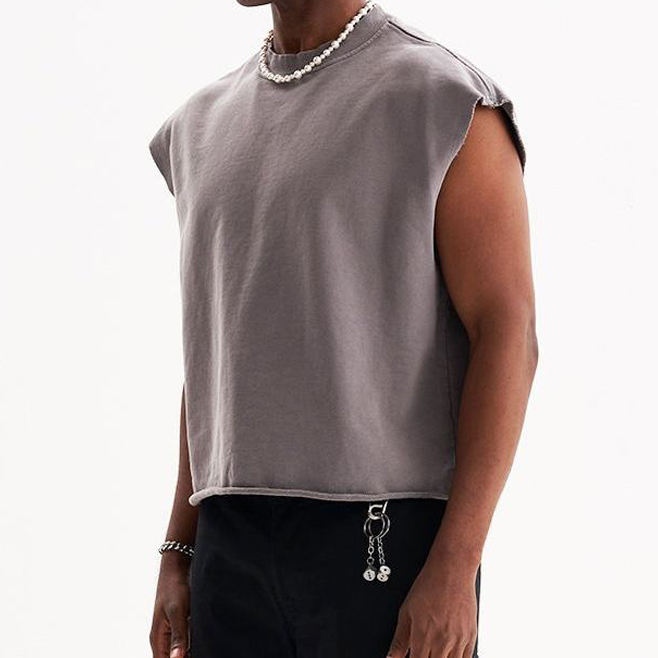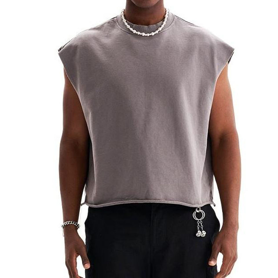 เสื้อกั๊กคอตั้งทรงสี่เหลี่ยมแบบลำลองสำหรับผู้ชาย ผ้าโพลีเอสเตอร์ 100% ทรงโอเวอร์ไซส์ สไตล์สตรีทแวร์ แบบครอป เหมาะสำหรับออกกำลังกาย