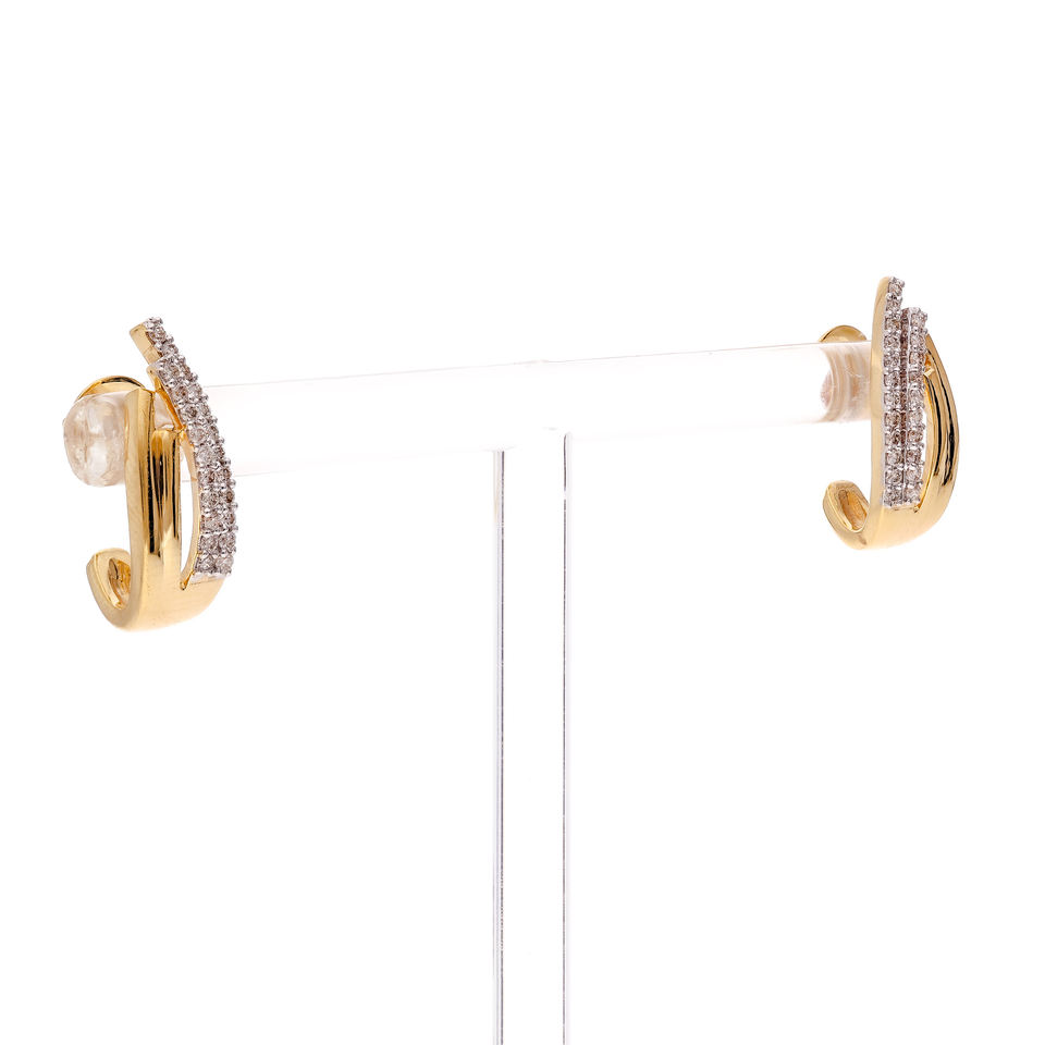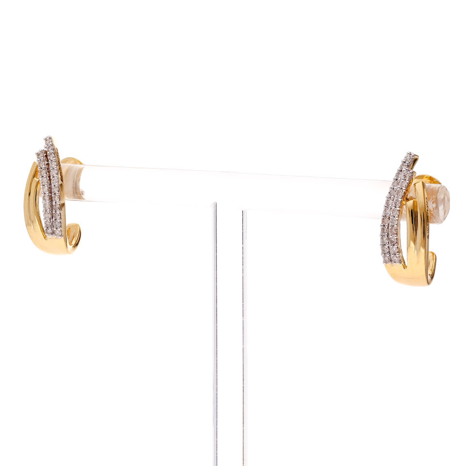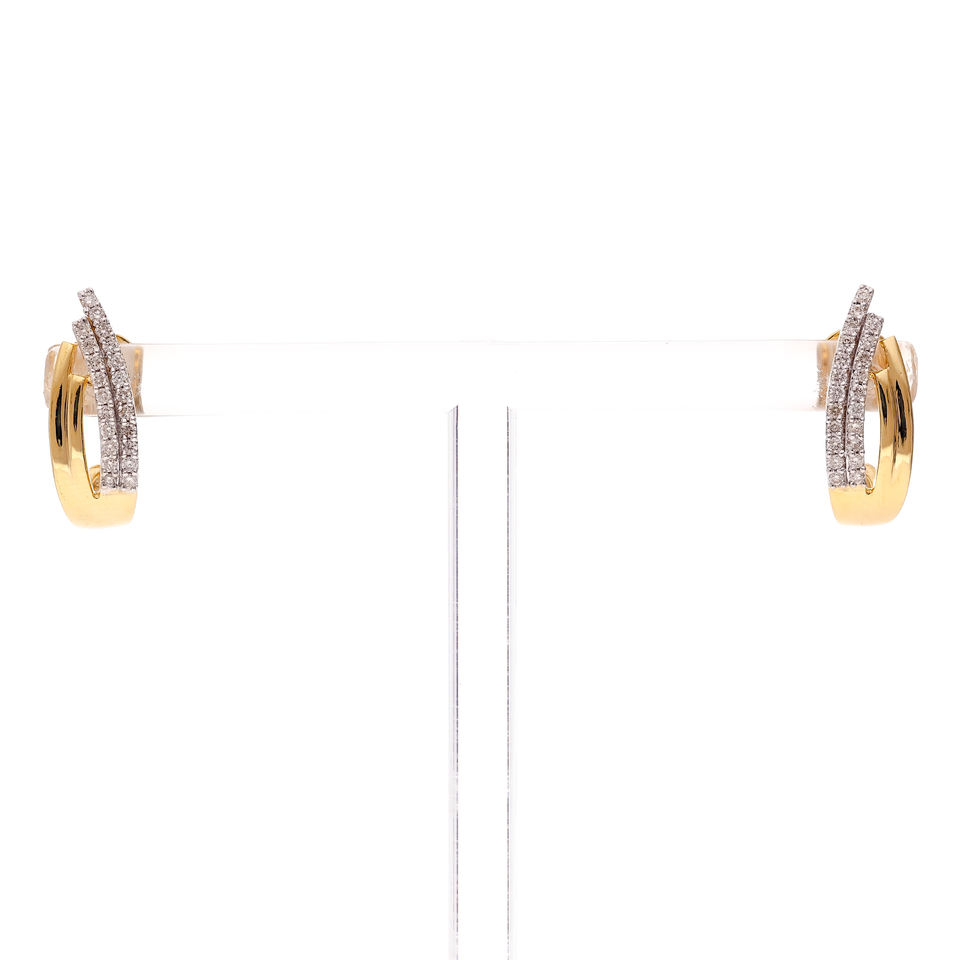 ต่างหูห่วงทองสองสีประดับเพชรแท้แบบไขว้ สำหรับผู้หญิง ของขวัญ