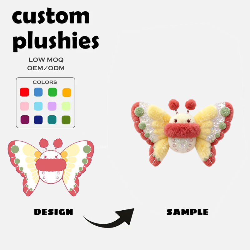 ผีเสื้อผ้าฝ้ายสีรุ้งเหมือนจริง น่ารัก สีชมพู ของเล่นสัตว์สีชมพูพาสเทล ชุดกล่องสุ่ม