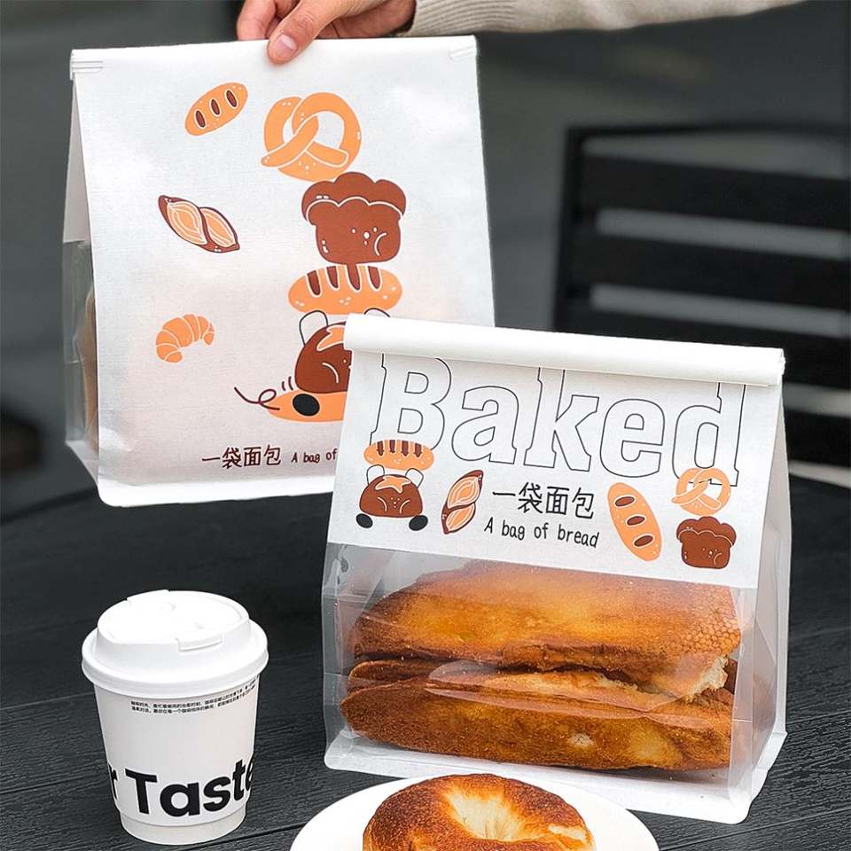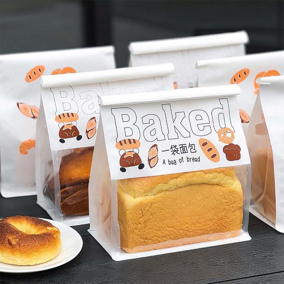 ถุงขนมปังรีไซเคิลแบบกำหนดเองสำหรับขนมขบเคี้ยว คุกกี้ ขนมอบ ครัวซองต์/ขนมปัง ซาวด์ดู บรรจุภัณฑ์แบบกำหนดเอง ถุงช้อปปิ้ง