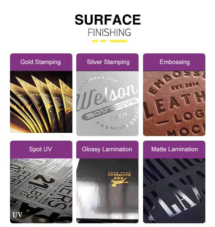 แมตต์เคลือบ, เคลือบเงา, การตอก, ลายนูน, เคลือบเงา, เคลือบยูวี, หายไป, ทองฟอยล์, ออกแบบตามสั่ง