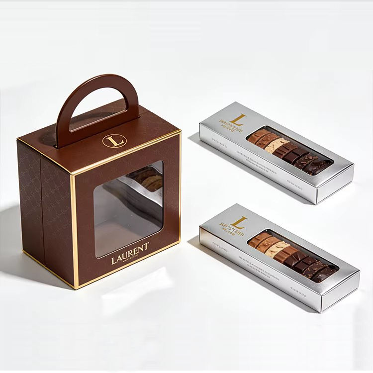 กล่องกระดาษรีไซเคิลสำหรับใส่ขนมอบ ช็อกโกแลต คุกกี้ อาหารแบบนำกลับบ้าน กล่องใส่ขนมไข่ทาร์ต มีหน้าต่าง
