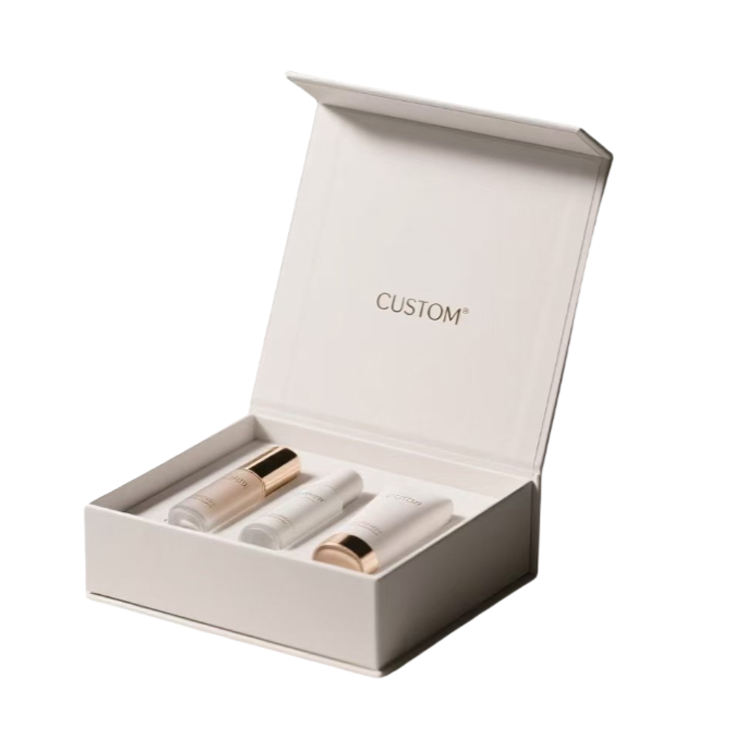 กล่องกระดาษแข็งแข็งสำหรับใส่โลชั่นทาเล็บน้ำมันของขวัญกล่องของขวัญที่ทำจากกระดาษแข็งโลโก้สีทองรีไซเคิลได้ตามต้องการ