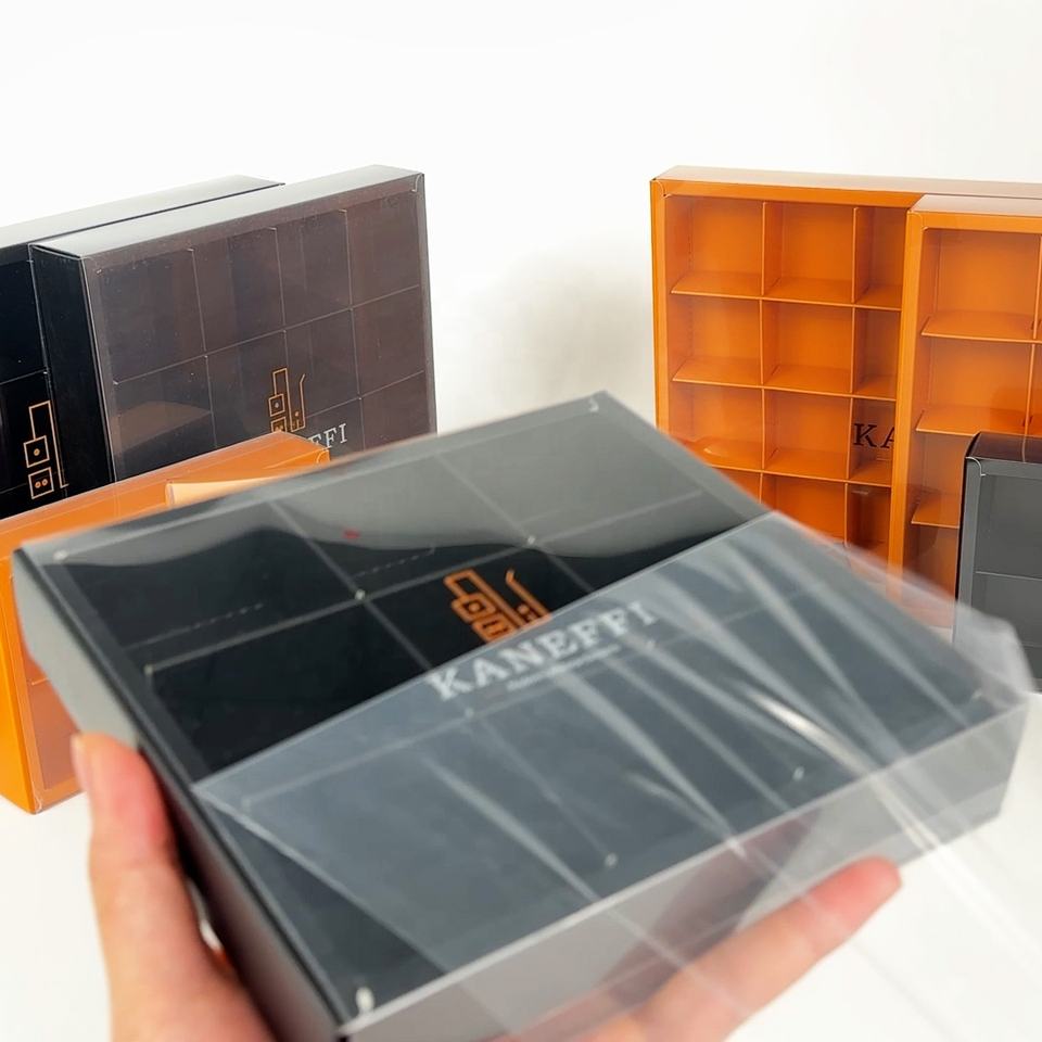 กล่องมาการองแบบเลื่อนเปิดสีชมพูหรูหรา รีไซเคิลได้ พิมพ์โลโก้ได้ เคลือบด้าน พร้อมฝาพลาสติกใส