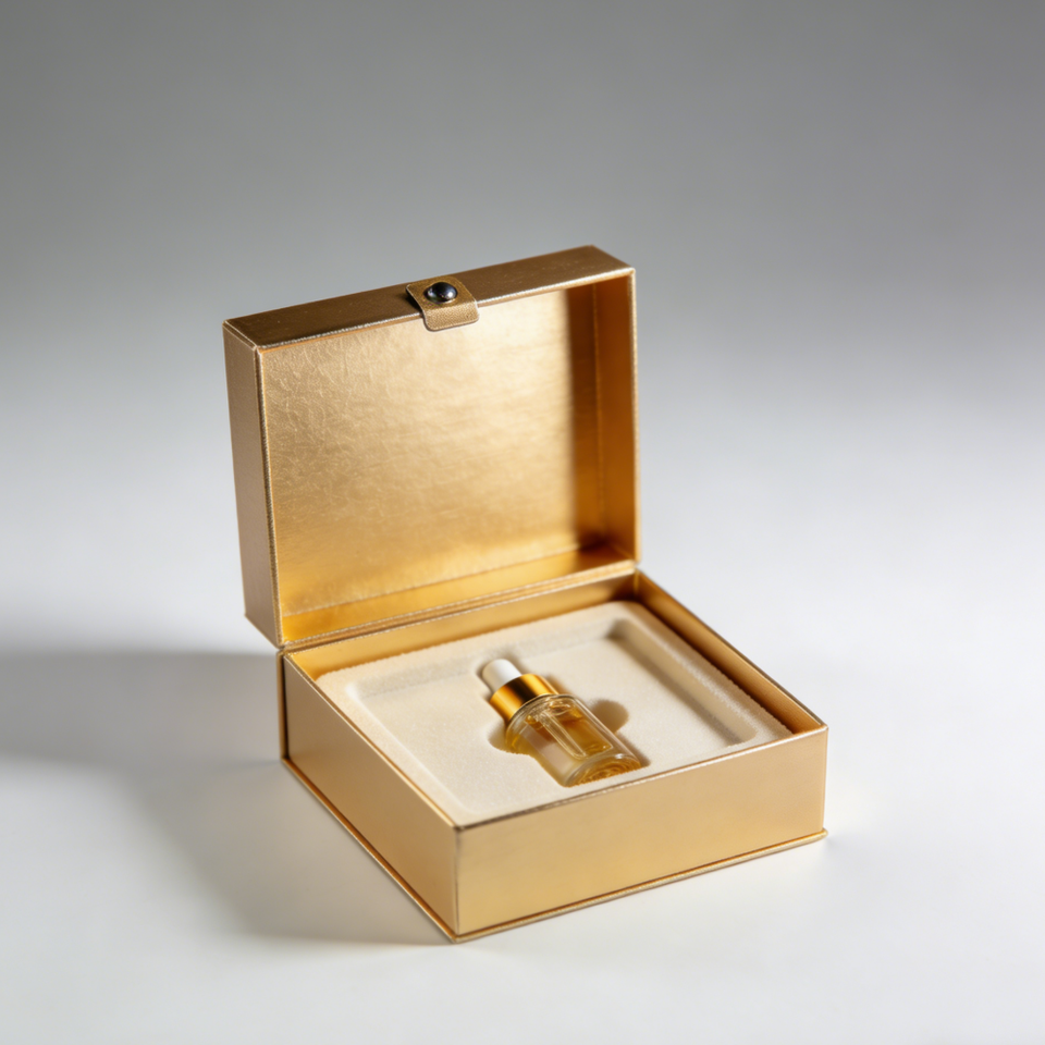 กล่องเครื่องสำอางแบบแข็งทำจากวัสดุรีไซเคิลพร้อมฟองน้ำบุภายใน บรรจุภัณฑ์กระดาษแข็งสำหรับผลิตภัณฑ์ความงามและบำรุงผิว